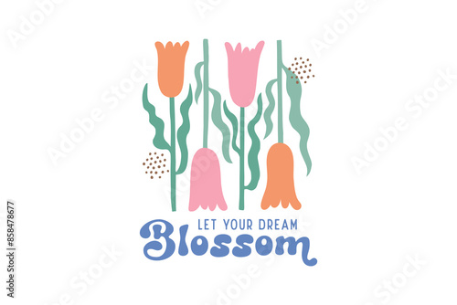 Let your dream Blossom, Boho Abstract Flower Quote T shirt Design