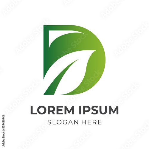 letter D an leaf logo design template concept vector with flat green color style