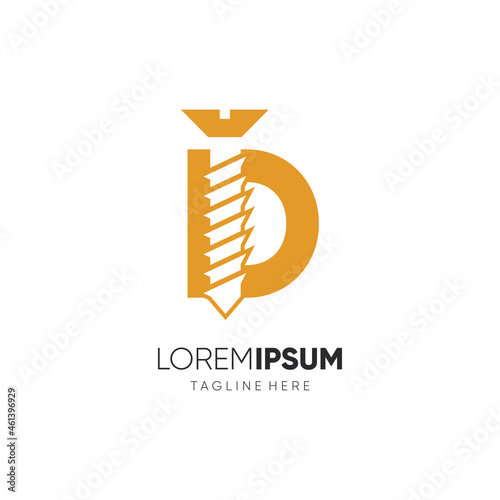 Letter D Initial Screw Logo Design Vector Icon Graphic Emblem Illustration Background Template