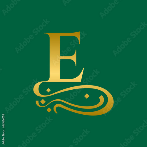 Letter E logo. Capital Letter for Monograms and Logos. Beautiful Filigree Font. Victorian Style.