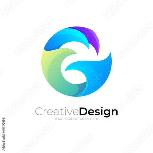Letter G logo and wave design combination, 3d colorful