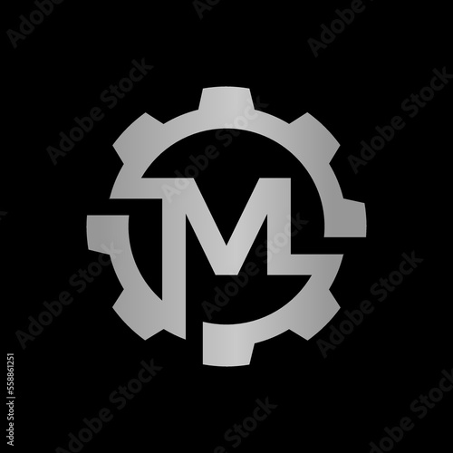 Letter M gear vector template logo. This Design is suitable for technology, industrial or automotive. Gradient. Gray.
