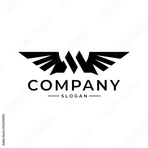 Letter M with wing logo vector.