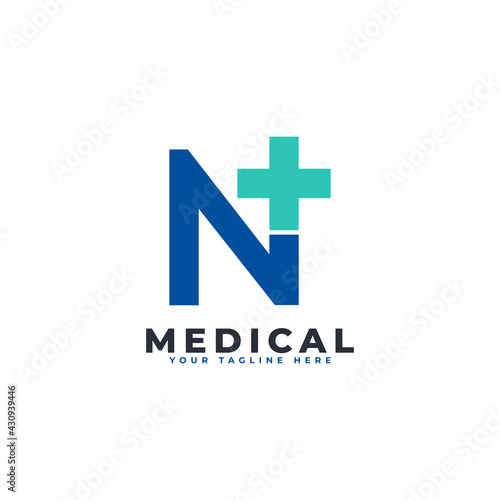 Letter N cross plus logo. Usable for Business, Science, Healthcare, Medical, Hospital and Nature Logos.