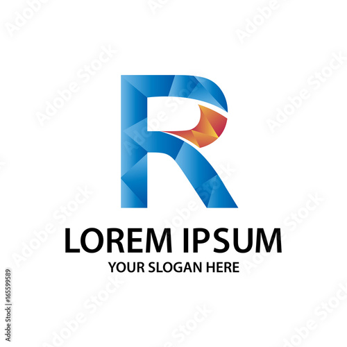 Letter R with polygonal style, logo design, isolated on white background.