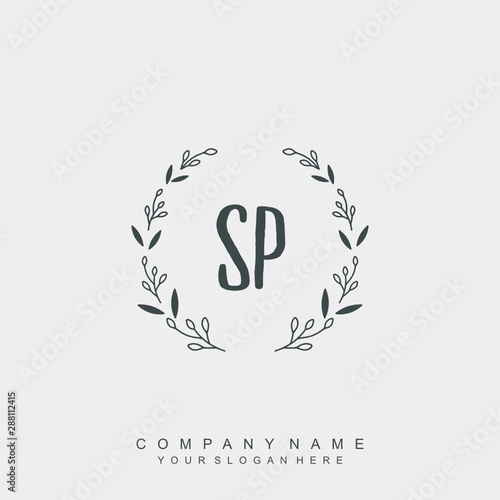 letter SP surrounded by beautiful and elegant flowers and leaves. Wedding monogram logo template.