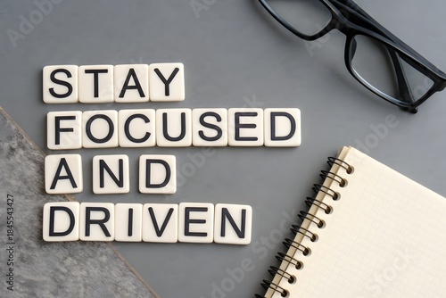 Letter Tiles Spell 'Stay Focused And Driven' On Desk