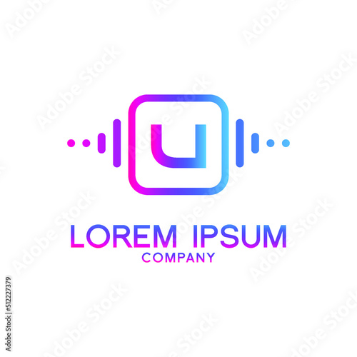 letter U with Pulse music player element. Logo template electronic music, equalizer, store, dj, nightclub, disco. Audio wave logo concept, Multimedia Technology themed, Abstract Shape vector