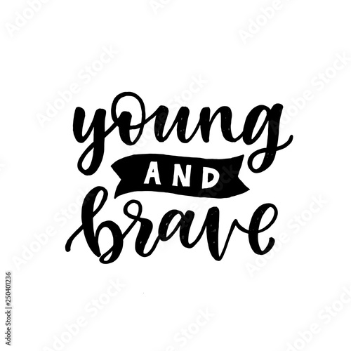 Lettering inspirational quote. Young and Brave. Isolated on white background. Perfect for prints or overlay for photography.