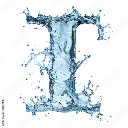 Letters I, Water Alphabet ultra-realistic water splash effect. isolated on a transparent background