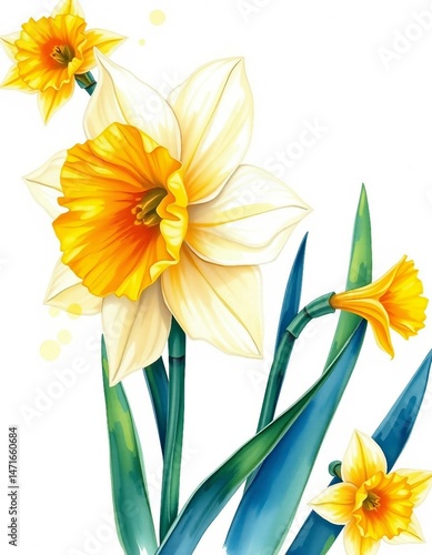 daffodil, daffodil, flower, yellow, watercolor, plant, spring flower, botanical, floral, frame, painting, garden, nature, decoration, easter, vernal, creative, art, elegant, vintage, flower, merry, festive, illustration, postcard, march, sunny, peaceful, bouquet, minimalist, bright, tender, affectionate, drawing, flowered