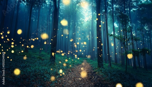 Leuchtende Glühwürmchen im geheimnisvollen Wald