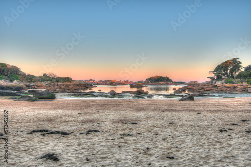 Lever du jour sur la côte de granit rose en Bretagne - France