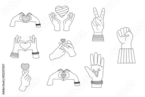 pride, outline, hand, nubes, sticker, rainbow, diversity, freedom, gay, love, set, community, equality, flag, month, support, sex, homosexual, festival, peace, poster, right, parade, emblem, proud, together, arm, choice, clip art, finger, friendship, gathering, gesture, human, identity, media, movement, peaceful, signs, human relationships, romance, social, solidarity, striped, march, rally, trans