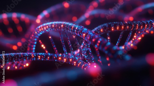 Life forms emerging from a glowing genetic code, DNA artistry, creation of life