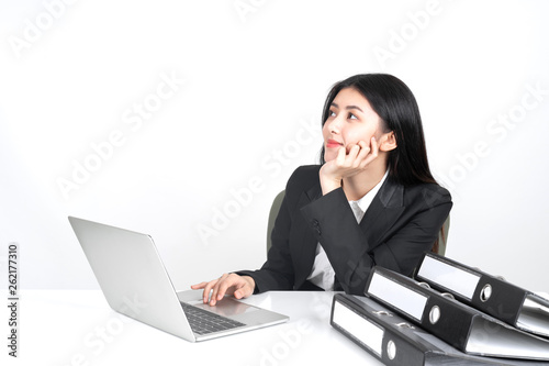 lifestyle beautiful Asian business young woman using laptop computer on office desk , business concept.