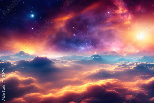 Light and Mystery of the Galaxy: Colorful Galaxy Cloud Nebula Background, Space and Astronomy Concepts, High Definition of Supernova and Night Sky Stars generative ai