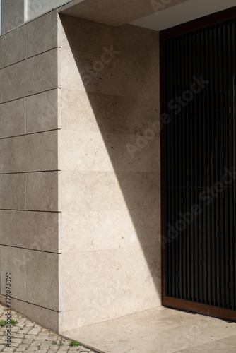 afternoon, architecture, building, day, daylight, entrance, geometric, geometry, house, light, minimal, natural light, nobody, outdoors, residential, shadow, street, sun, sunny, texture, urban, wall