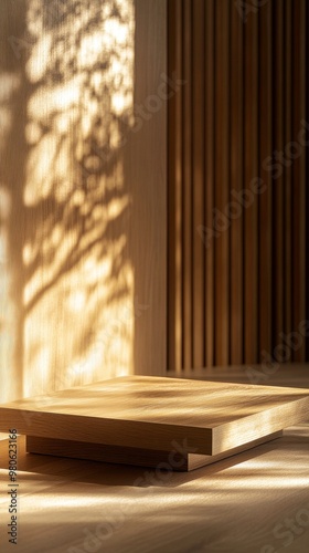 Light and shadow staggered wooden square table e-commerce booth details page background