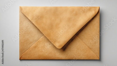 envelope, mail, paper, letter, brown, beige, post, sealed, empty, closed, vintage, antique, correspondence, communication, message, address, postal, folded, top, bottom, flat, light, surface, grey, background, light brown, pale, simple, blank, plain, neutral, textured, craft, papery, item, object, stationary, electronic mail, delivery, receiving, sending, document