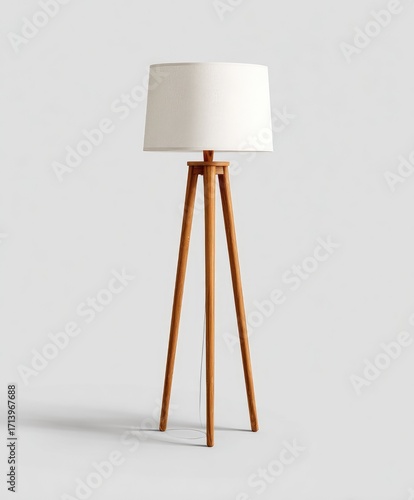 lamp, floor, light, wooden, tripod, footed, shade, white, beige, brown, modern, simple, minimalist, design, home, interior, decor, lighting, furniture, accent, standing, adjustable, bright, lightened, illumination, warm, neutral, clean, contemporary, elegant, subtile, portable, easy, functional, practical, fixture, decorating, tall, refined