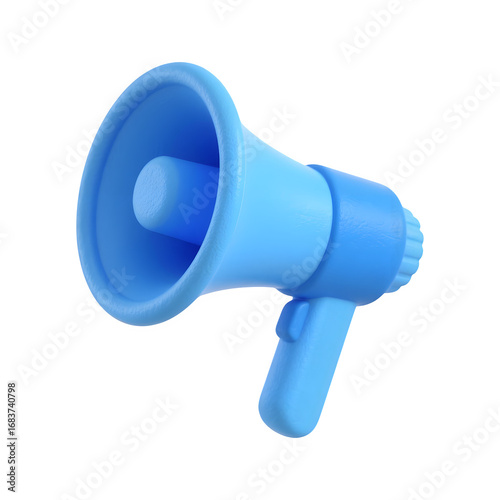 Light blue 3D megaphone on a transparent background for communication and announcements
