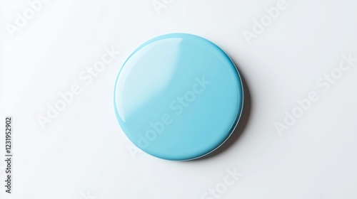 Light blue button badge mockup isolated on white, top view, ready for design.