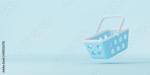 Light blue empty shopping basket with copy space. Minimal design. 3d illustration