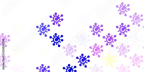Light Blue, Red vector background with covid-19 symbols.