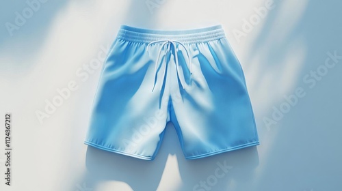 swim, trunk, short, swimwear, bathing, summer, fashion, man, male, clothing, apparel, light, blue, sky, pastel, minimal, studio, photo, style, design, texture, smooth, fabric, white, background, sunlight, shadow, e-business, website, catalog, marketing, advertising, product, menswear, casual attire, beach, water, holiday, relaxed