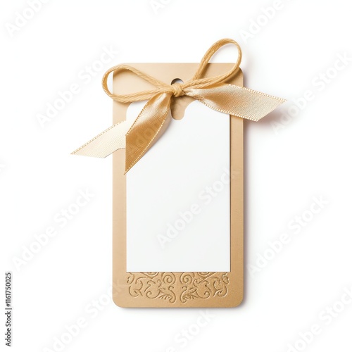 light brown cardboard hangtag for products or gift tag mockup with off-white ribbon and golden detail