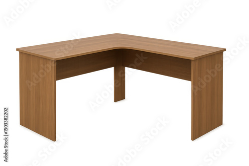 Light brown l-shaped desk with transparent background, perfect for office or home workspace visualizations