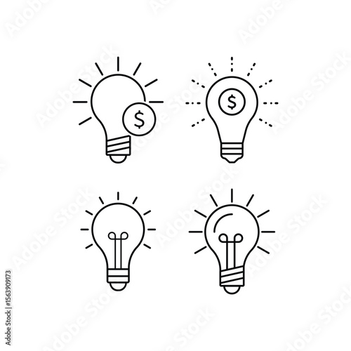 Light bulb business icon set. simple style out line light bulb silhouette idea goal business digital content. vector on withe background.