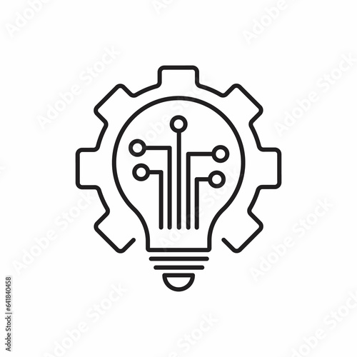 Light bulb, electronics, gear, rays. Creative solutions in electronic technologies. linear icon isolated on white background