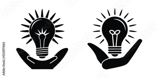Light Bulb With A Stylized Open Palm Symbolizing Giving Silhouette on White Background