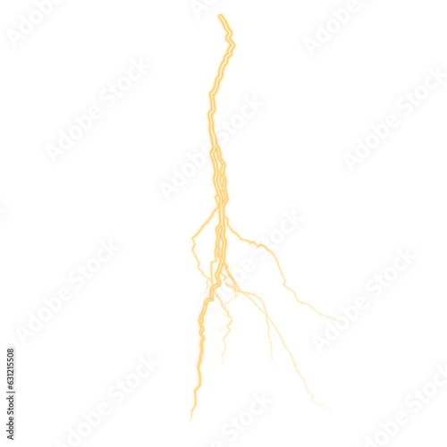 Light effect of gold lightning. PNG. Realistic flash with lightning. Electric explosion.
