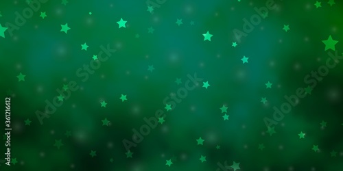 Light Green vector background with small and big stars. Shining colorful illustration with small and big stars. Pattern for new year ad, booklets.