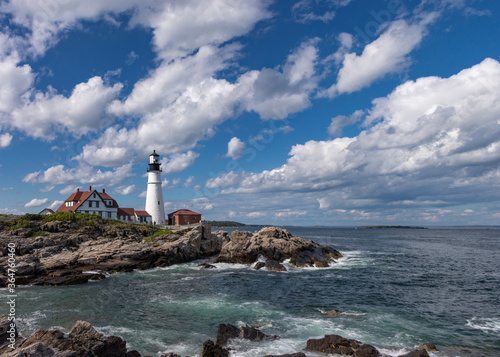 lighthouse, sea, ocean, coast, water, beach, light, sky, blue, landscape, coastline, house, wave, maine, rock, portland, travel, rock, shore, beacon, nature, tower, island, california, navigation