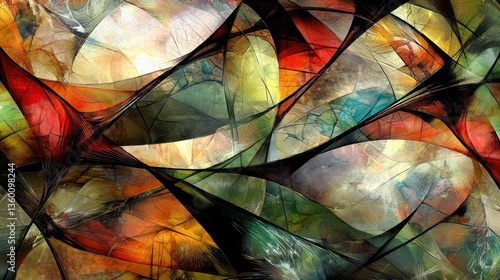 Light passing through fractured glass, forming intricate reflections and shadows for an abstract effect.