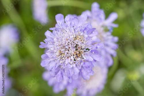 flower, pincushion, plant, closeup, garden, nature, blossom, purple, blue, colours, summer, colourful, macro, bloom, perennial, spring, beautiful, small, mauve, soft, softness, feminine, pretty, green, detail, head, botany, violet, pollen, lilac, delightful, dainty, romantic, sharpened, full, fresh, freshness, lovely, burst, open, light, airy, pastel, bright