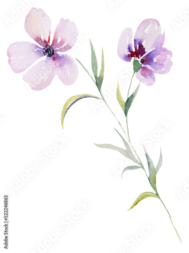 Light purple Watercolor wildflowers and leaves, wedding and greeting illustration elements