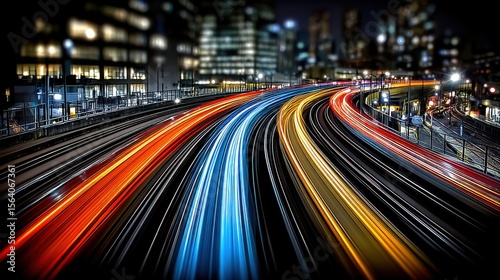 traffic, light, trail, night, city, urban, highway, motion, speed, transportation, vehicle, streak, long, exposure, city landscape, light, blur, infrastructure, modern, life, scene, tied-up, street, movement, line, illuminated, building, nightlife, dynamic, colourful