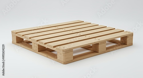 Light Wooden Pallet Isolated on White Seamless Background Minimalist Shipping Concept for Logistics and Distribution Industry Shot with Clean Perspective