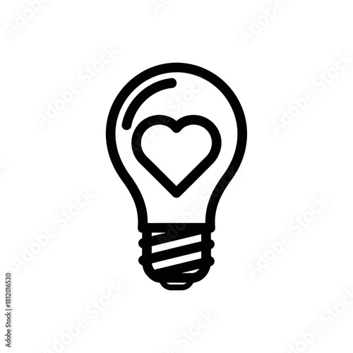 Lightbulb with Heart - Black and White Line Art Symbolizing Love and Inspiration.