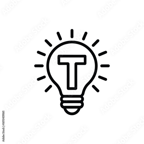 light bulb, idea, innovation, creativity, inspiration, thought, concept, symbol, icon, design, graphic, outline, line, art, minimalist, simple, black, and, white, illumination, energy, electricity, letter, t, alphabet, initial, branding, startup, solution, brainstorming