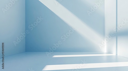 light, minimalist, room, empty, space, white, blue, corner, sunlight, shadow, ray, interior, modern, clean, bright, geometric, simple, cleanliness, design, studio, line, monochromatic, solid, surface, calm, perspective