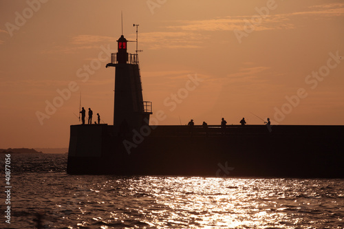 lighthouse, breakwater, france, sunset, warmth, sea, fishing, harbor, coast, coastline, summer, holiday, sundown
