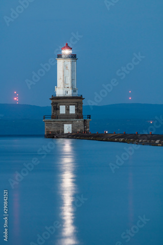 lighthouse, sea, light, water, ocean, sky, beacon, coast, white, blue, building, house, tower, beach, michigan, navigation, safety, architecture, red, landscape, lake, harbor, coastline, warning, ship