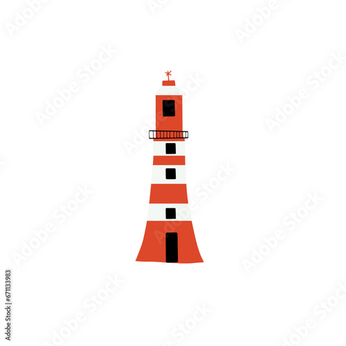 Lighthouse. Coastline architecture building. Beacons with window. Vector illustration