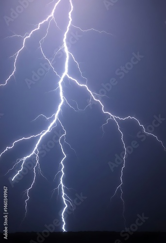 lightning bolt striking across a dark blue sky